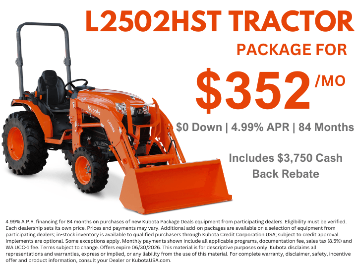 Get more done with the L2502 - now with $0 down, up to 84 months financing available AND up to $3,750 in savings.*