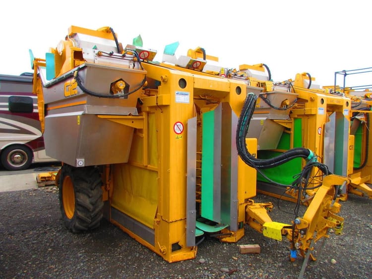 Blueline BAT-1600 Orchard manlift. This towable manlift has four separate buckets that are independently operated. Perfect for installing orchard trellis or netting.