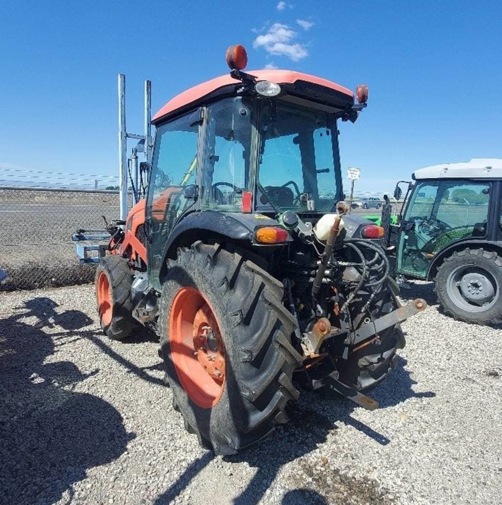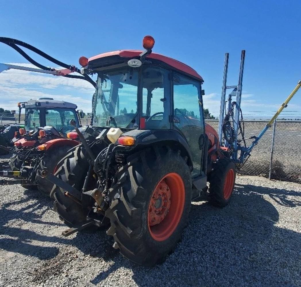 This narrow Kubota M5N-091 HDC24 cab tractor is the perfect work horse for the vineyard or orchard. With 92HP on tap a 24 speed transmission, this tractor will be up to the task. It is currently sitting on 14.9X28 /9.5X22 rubber and is equipped with an Edwards DH83 front three point. This tractor is in great condition and is ready to go to work.